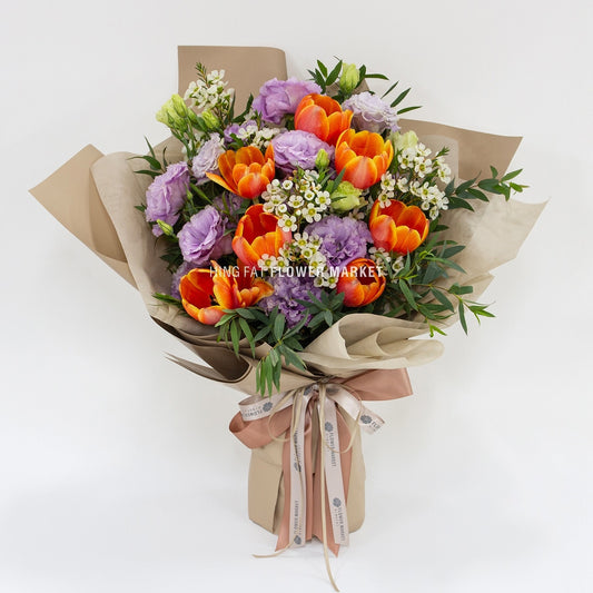 Orange tulip and eustoma bouquet