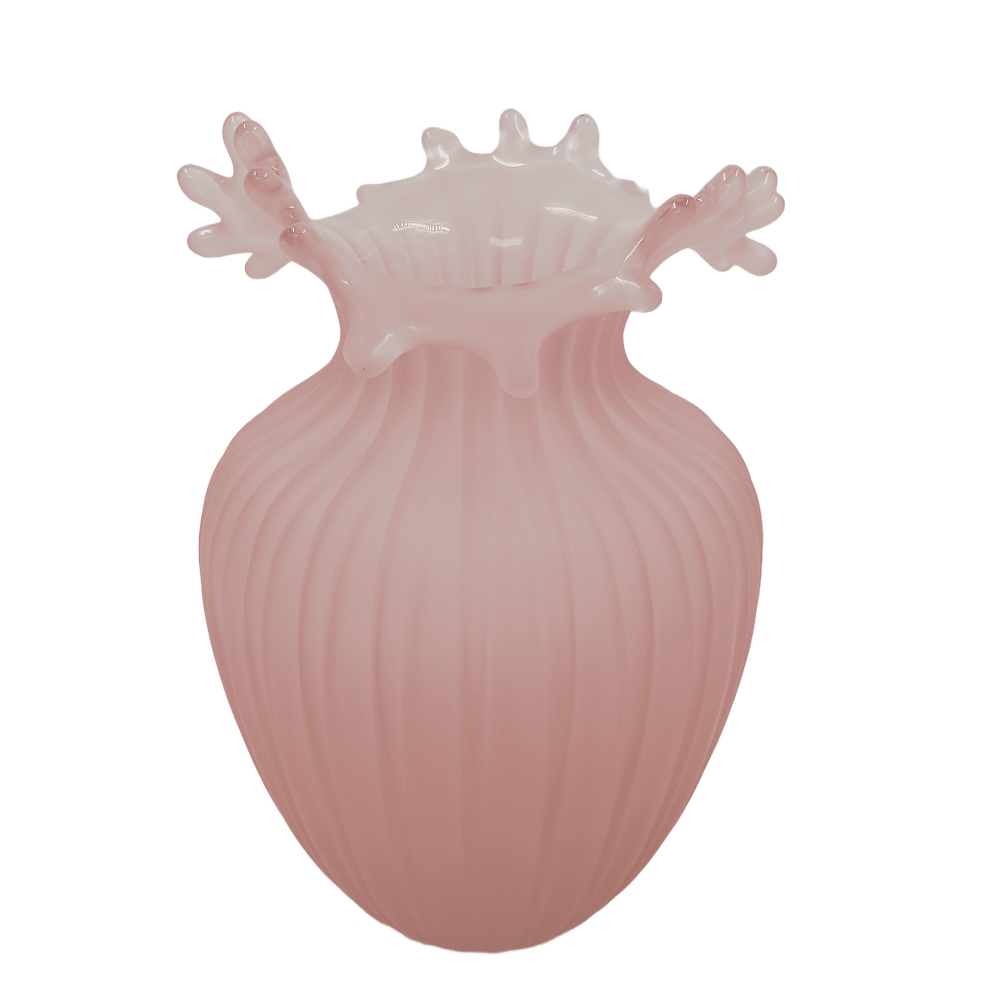 Wave Top Frosted Pink Vase - M (20cm (H) x 14cm (D)