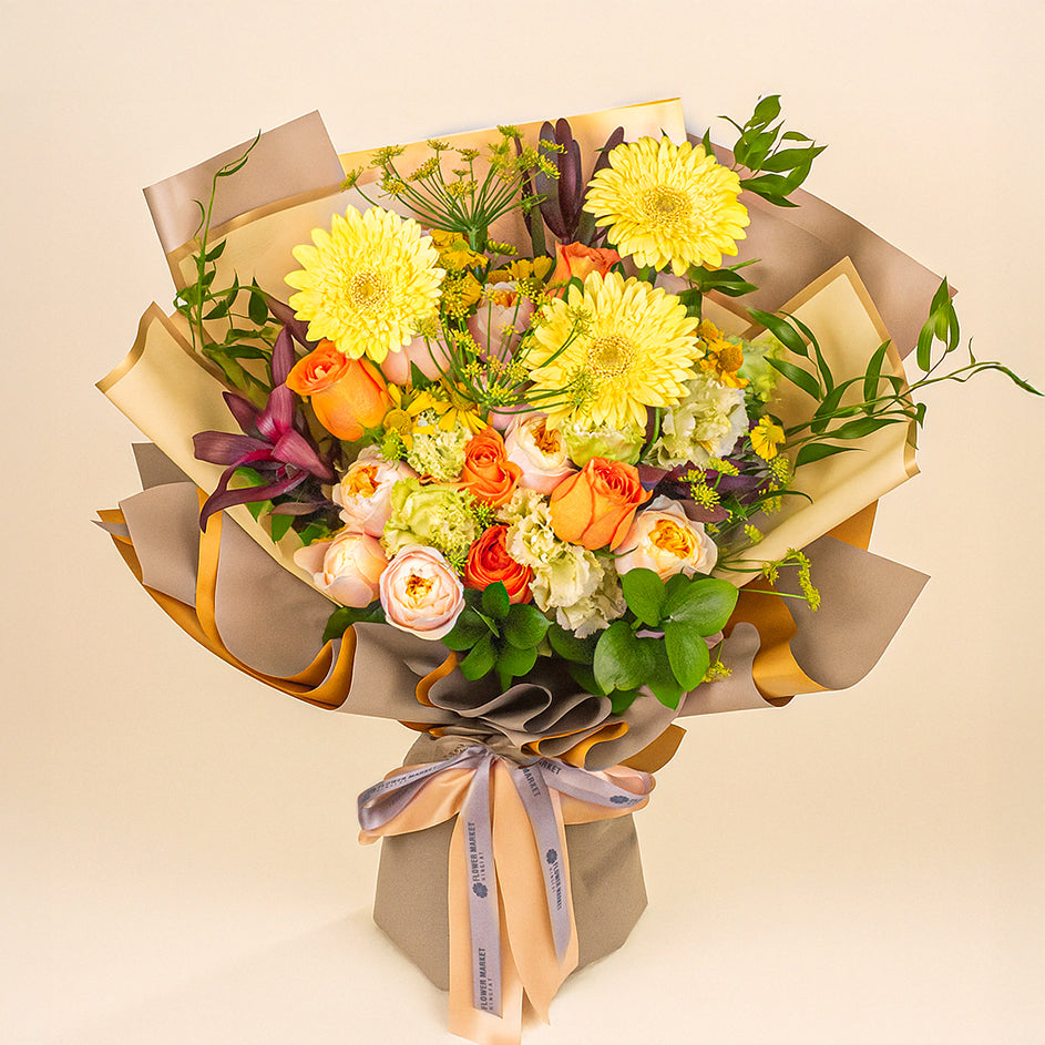 我們的花藝產品全都取材自天然產物,季節溫度均會影響其品質差異,請容許我們的花藝師幫您作出專業的調整,更換類似花材或葉材,呈現一樣的完美新鮮花禮。 請參閱替換花材條款查看有關之細節。